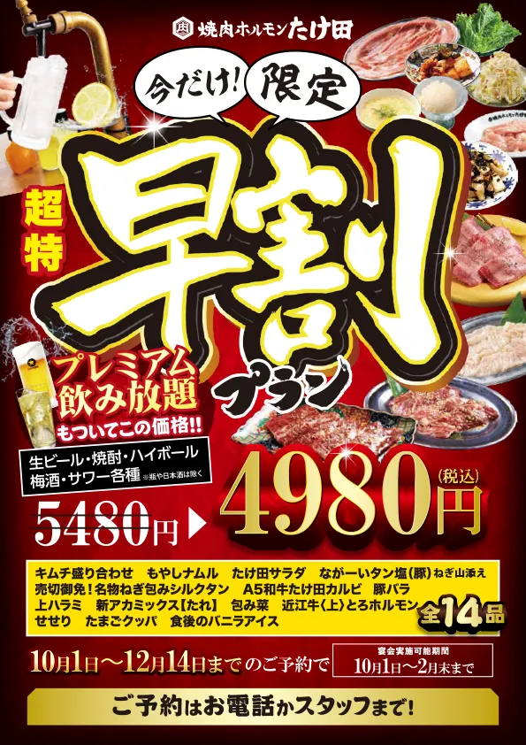 いつも「焼肉ホルモンたけ田 八王子」をご利用いただき、誠にありがとうございます!